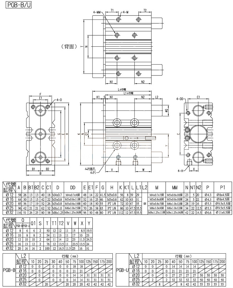PGB-U-32-25-S-2,PGB-U-32-50-S-2,PGB-U-32-75-S-2,PGB-U-32-100-S-2,
