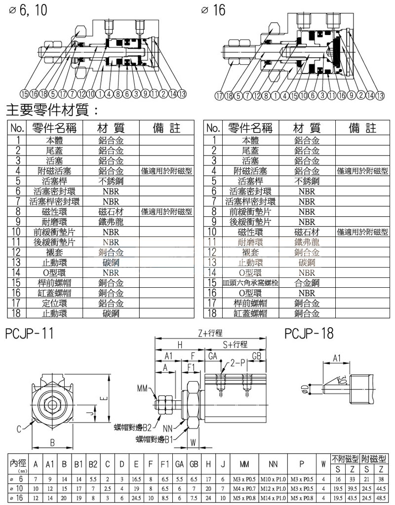 PCJP-11-6,PCJP-11-10,PCJP-11-16,PCJP-18-6,PCJP-18-10,panix復動螺牙氣缸 |