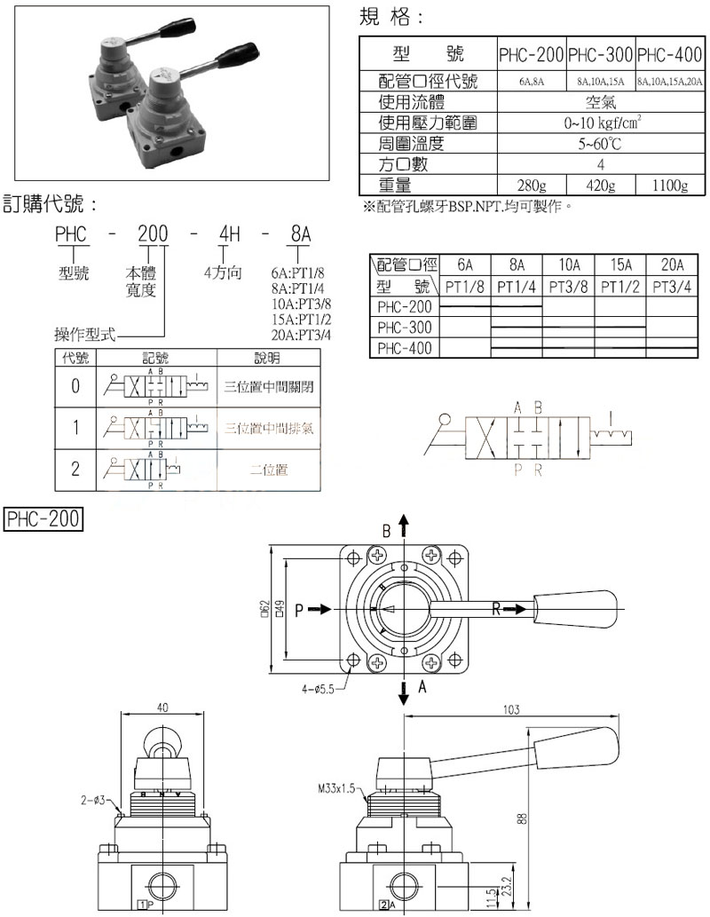詳細信息 PHC-200-4H,PHC-300-4H,PHC-400-4H,PHC-201-4H,panix手動閥