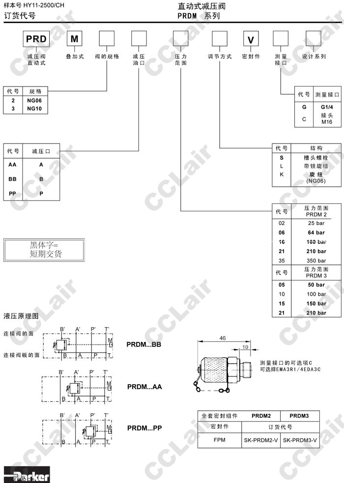 PRDM2AA,PRDM2BB,PRDM2PP,PRDM2AA02SVG,PRDM2BB02SVG,PRDM2PP02SVG,PRDM2AA02SVC,Parker直動式減壓閥