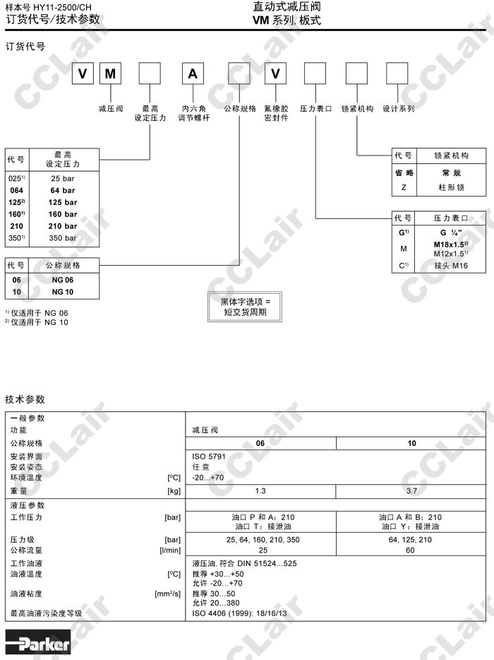 VM025A06VG,VM160A06VG,VM350A06VG,VM125A10VC,VM064A06VG,VM210A06VG,VM064A10VM,Parker直動(dòng)式減壓閥