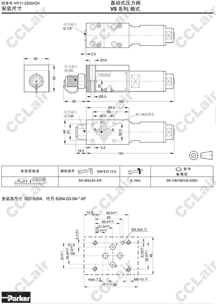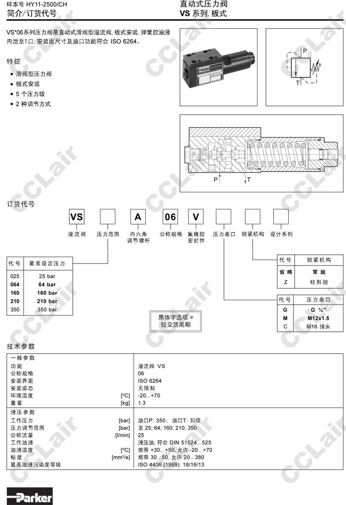 詳細(xì)信息 VS025A06VG,VS064A06VG,VS160A06VG,VS210A06VG,VS350A06VG,VS025A06VM,Parker直動(dòng)式壓力閥