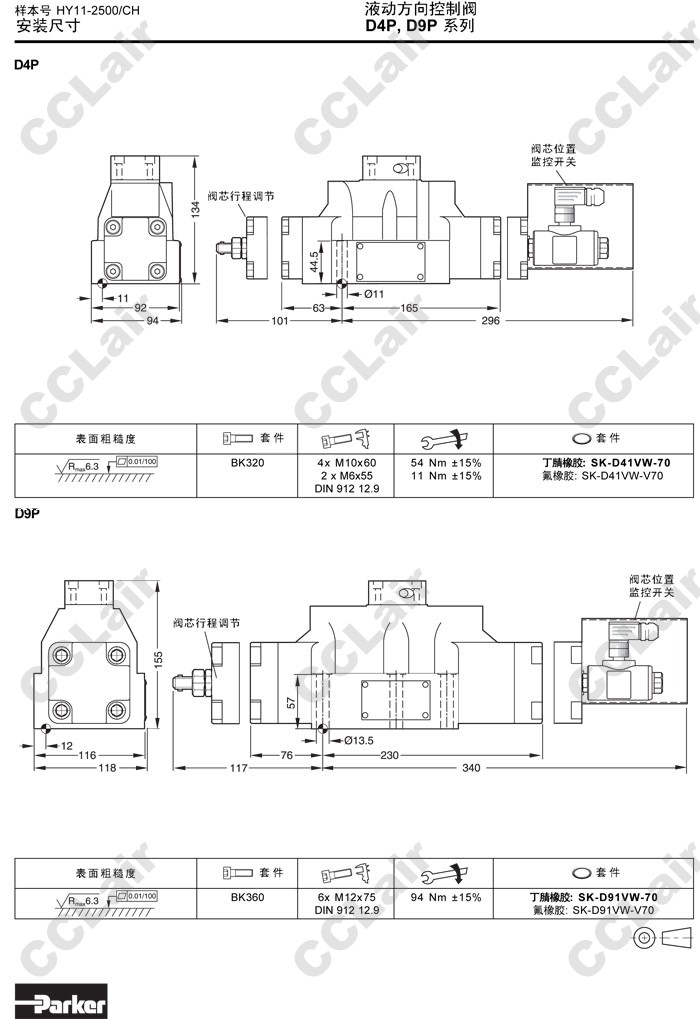 D4P,D9P,D11P,D4P1C2N,D9P1C2N,D11P1E2N,D4P1C2V,D9P1C2V,D11P1E2V,Parker液動方向控制閥