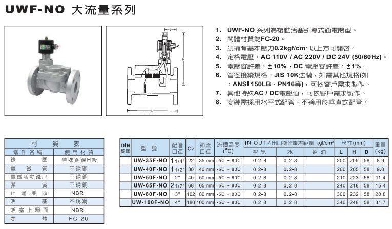 UW-35F-NO,UW-40F-NO,UW-50F-NO,UW-60F-NO,UW-80F-NO,UW-100F-NO,UNI-D大流量電磁閥