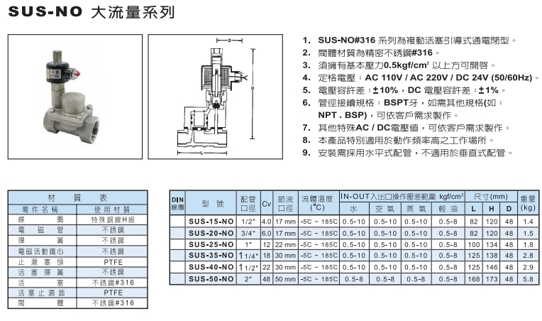 SUS-15-NO,SUS-20-NO,SUS-25-NO,SUS-35-NO,SUS-40-NO,SUS-50-NO,UNI-D大流量電磁閥