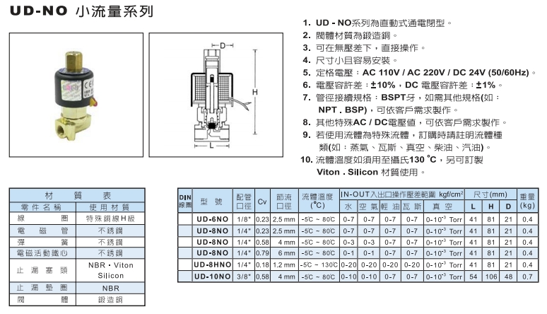 UD-6NO,UD-8NO,UD-8HNO,UD-10NO,UNI-D小流量電磁閥