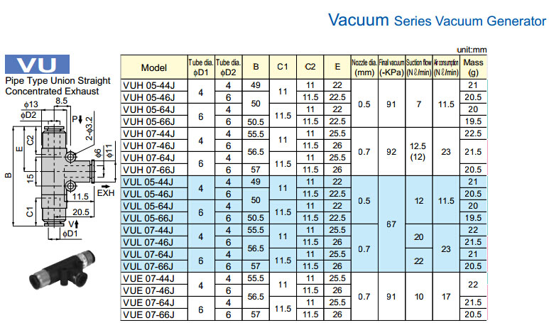VUH05-44J,VUH07-44J,VUL05-44J,VUL07-44J,VUE07-44J,VUL05-66J,VUH07-64J,PISCO真空發(fā)生器