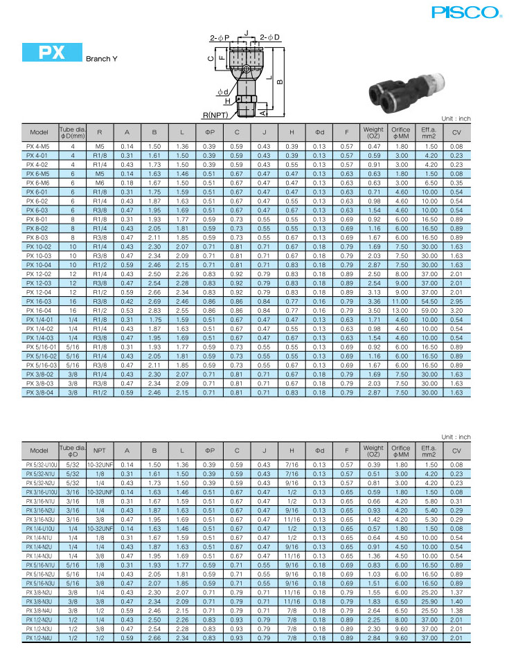 PX5/32-U10U,PX3/16-U10U,PX1/4-U10U,PX5/16-N1U,PX3/8-N2U,PX1/2-N2U,PISCO快速接頭