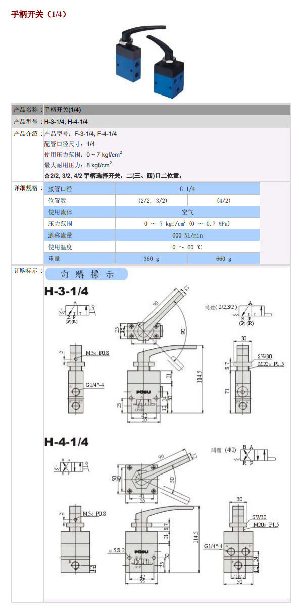 H-3-1/4,H-4-1/4,PST手柄開關