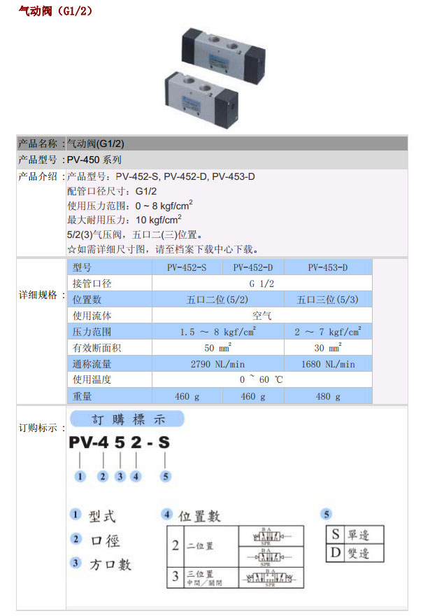 PV-452-S,PV-452-D,PV-453-D,PST氣動閥