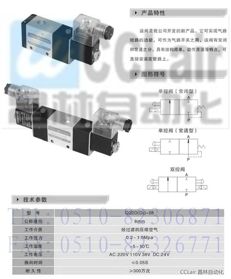 產(chǎn)品: 瀏覽次數(shù):996Q22D2-08,二位二通電磁換向閥