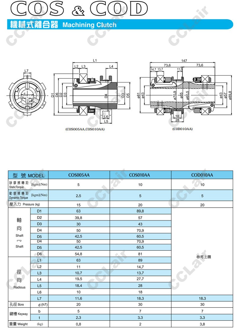 詳細(xì)信息 COD010AA,COS005AA,COS010AA,機(jī)械式離合器,CCLair