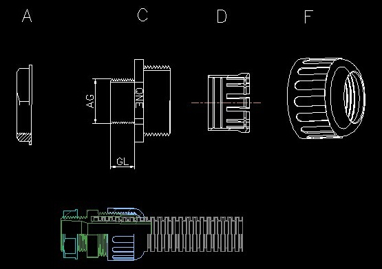 ·產(chǎn)品材質(zhì): A.C.D.F部分采用UL認(rèn)可之無鹵素(Halogen-Free)尼龍PA66(防火等級UL94V-2)制成;(可定制UL認(rèn)可的V-0防火等級尼龍原料);