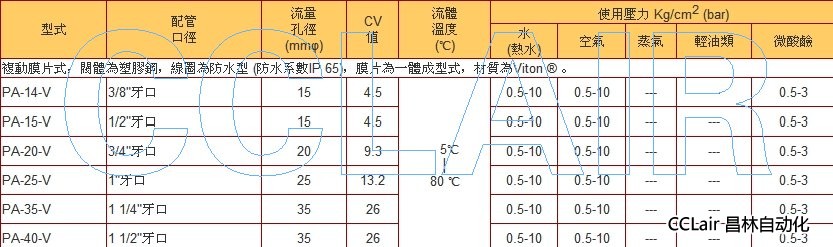 PA-14-V,PA-15-V,PA-20-V,PA-25-V,PA-35-V,PA-40-V,常閉電磁閥