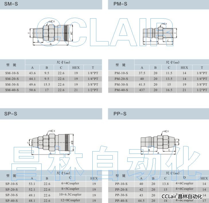 SM-10,SM-20,SM-30,PM-10,PM-20,PM-30,SP-10,SP-40,PP-10,PP-20,PP-40,雙手操作快換接頭