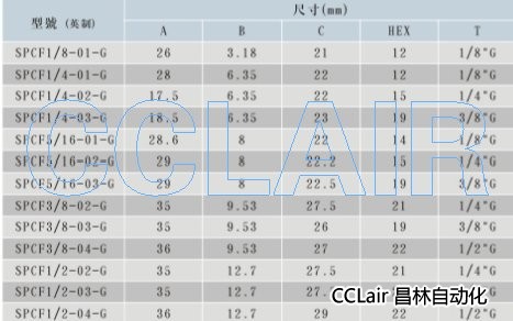詳細(xì)信息 SPCF1/8-01-G,SPCF1/4-02-G,SPCF5/16-01-G,SPCF3/8-01-G,SPCF1/2-04-G,接頭