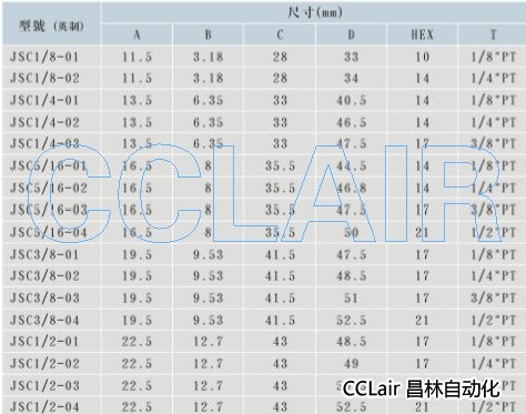 JSC1/8-01,JSC1/8-02,JSC1/4-02,JSC5/16-01,JSC3/8-01,JSC3/8-03,JSC1/2-04,接頭