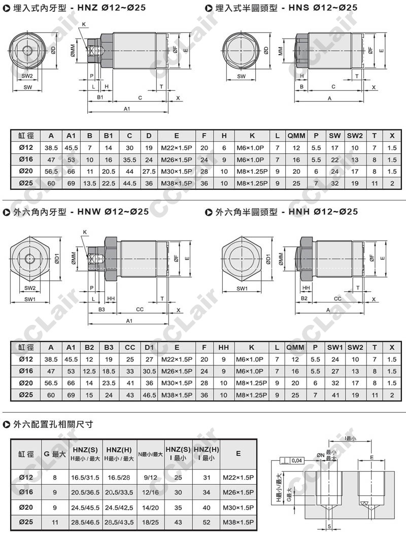 氣立可(chelic),HNZ12,HNZ16,HNZ20,HNZ25,HNS12,HNS16,HNS20,HNS25,HNW12,HNW16,HNW20,HNW25,HNH12,HNH16,螺栓式單