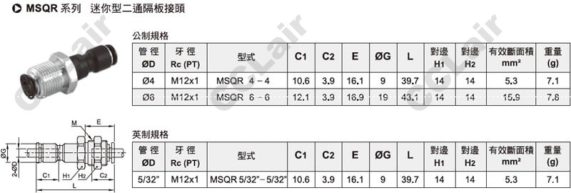 氣立可(chelic),MSQR4-4,MSQR6-6,MSQR5/32-5/32,T型三通接管