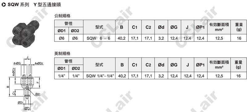 詳細信息 氣立可(chelic),SQW6-6,SQW1/4-1/4,Y型五通接頭