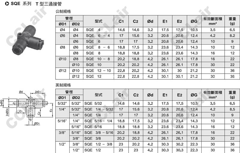 SQE10-8,SQE12,SQE1/4-5/32,SQE5/16-1/4,SQE3/8-5/16,SQE1/2-3/8,SQE6-4,SQE12-10,T型三通接管