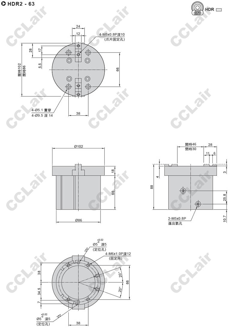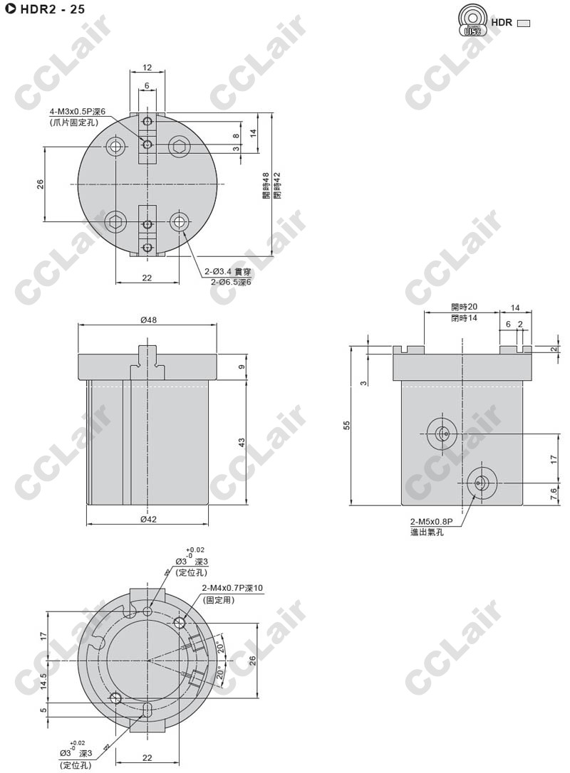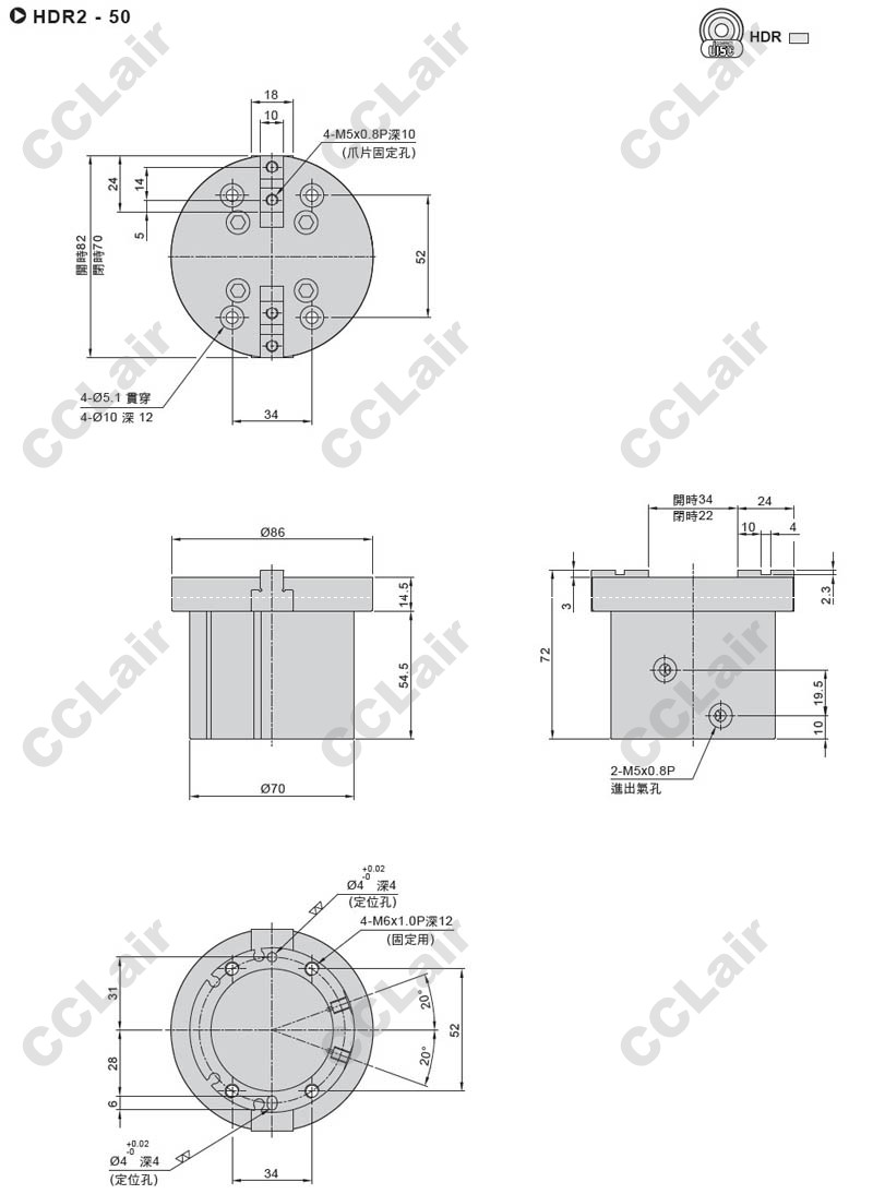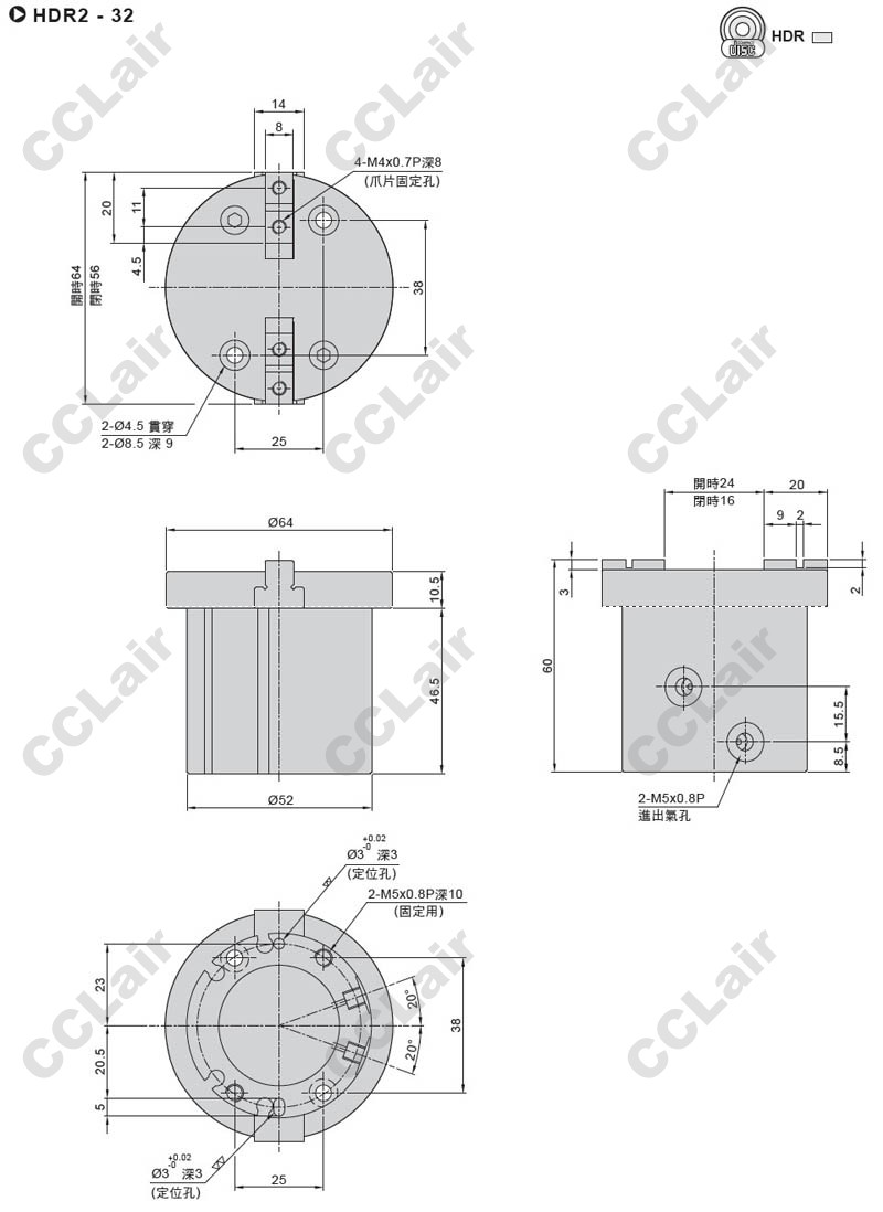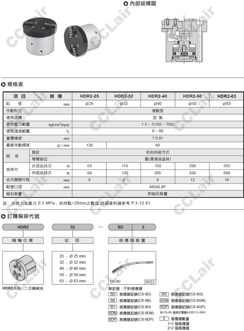 氣立可(chelic),HDR2-25-SD2,HDR2-32,HDR2-40,HDR2-50,HDR2-63,HDR225-SD2,HDR232-SD2,二爪機械夾