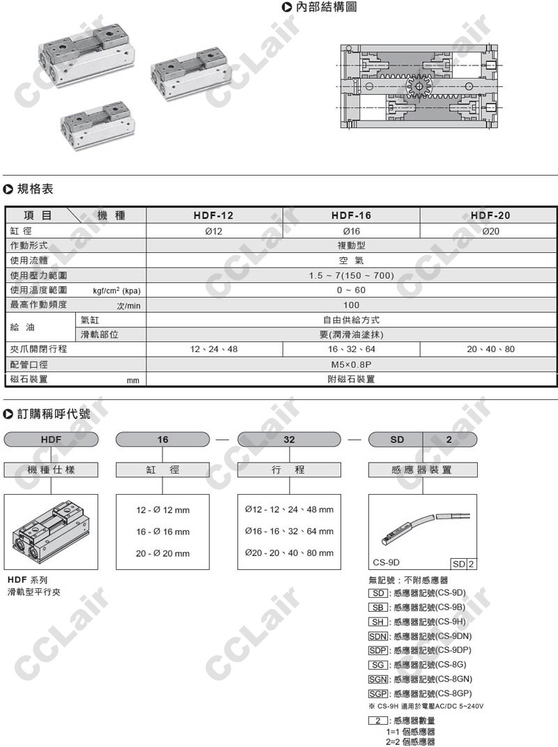 HDF-12-12-SD2,HDF-12-24-SD2,HDF-12-48-SD2,HDF-16-16-SD2,HDF-16-32-SD2,HDF-16-64-SD2,滑軌型平行夾
