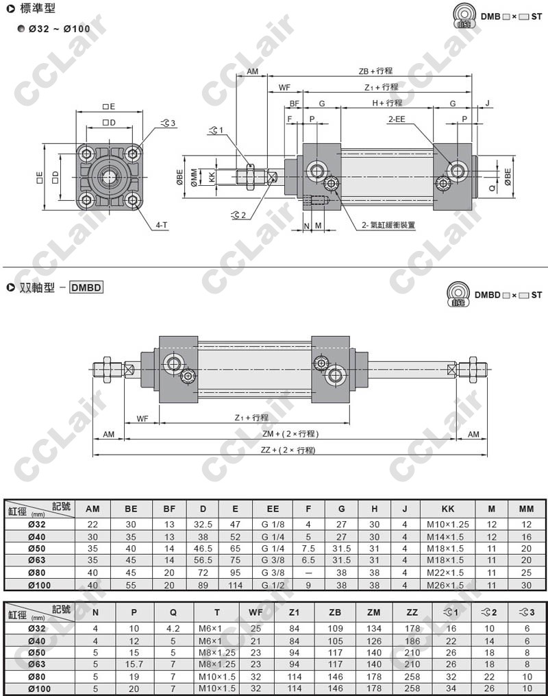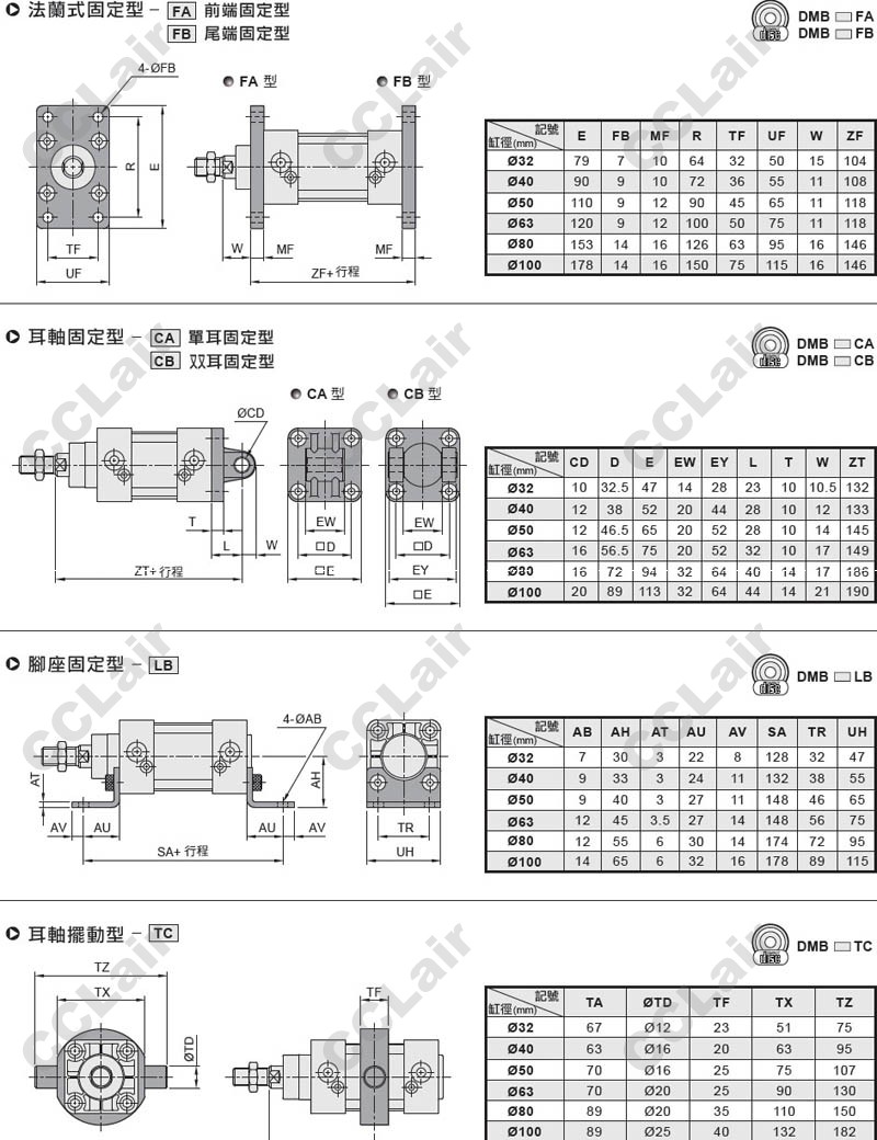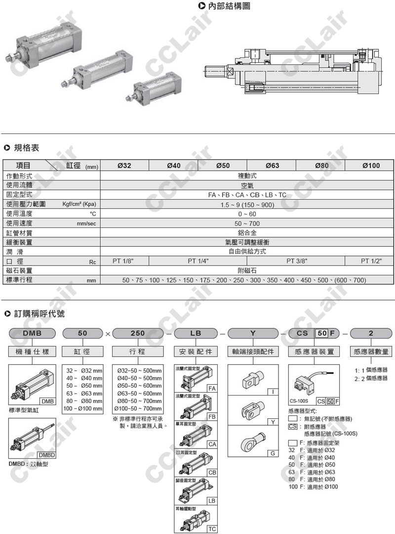 氣立可(chelic),DMB40*50,DMB50*75,DMBD63*50,DMBD100*400,DMB32X125,DMBD40X300,標準型氣缸
