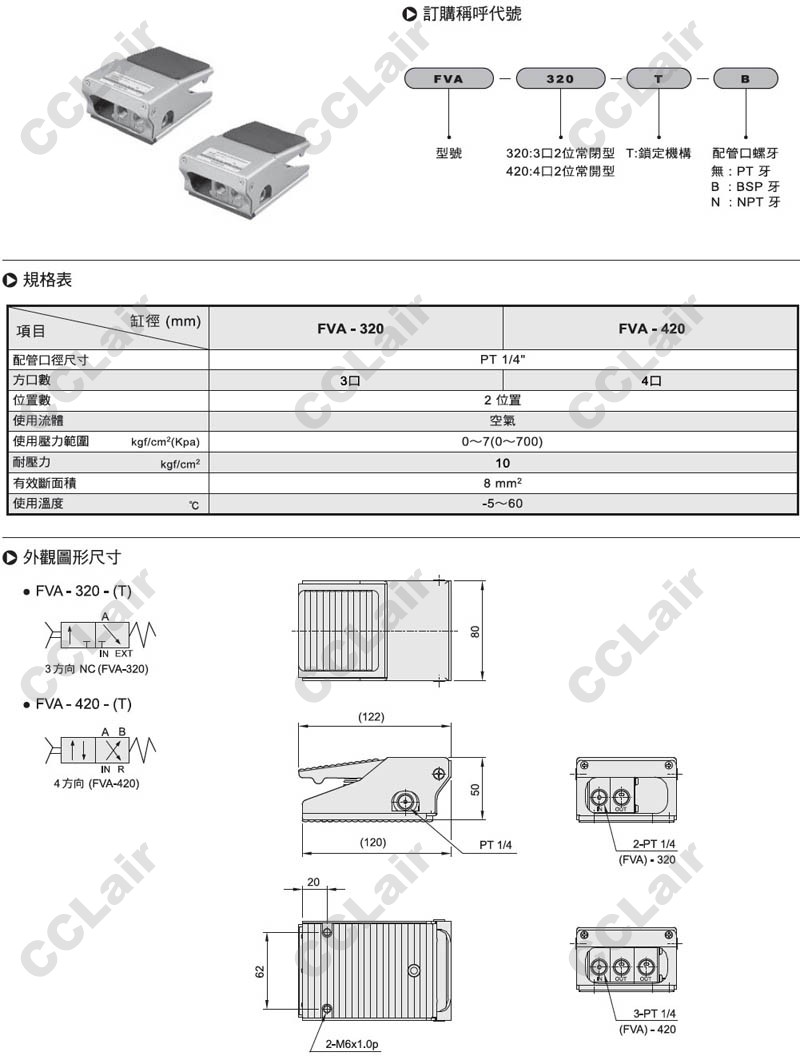氣立可(chelic),FVA-320-T,FVA-420-T,FVA-320-T-B,FVA-420-T-B,FVA-320-T-N,FVA-420-T-N,腳踏閥