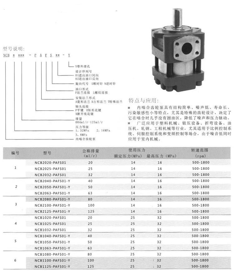 詳細信息 NCB2020-PAFS01,NCB1025-PAFS01,NCB2032-PAFS01,NCB1040-PAFS01-Y,齒輪泵