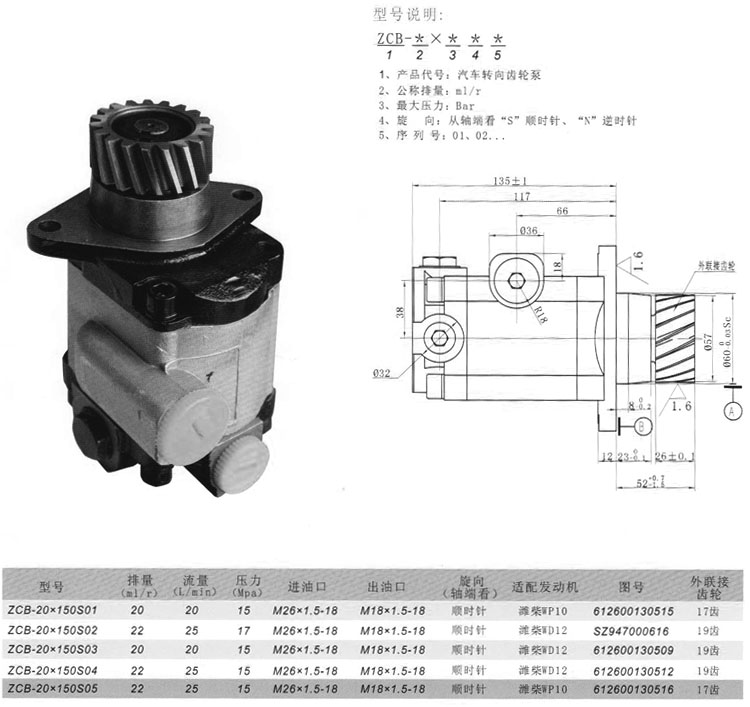ZCB-20*150S01,ZCB-20*150S02,ZCB-20*150S03,ZCB-20*150S04,ZCB-20*150S05,轉向齒輪泵