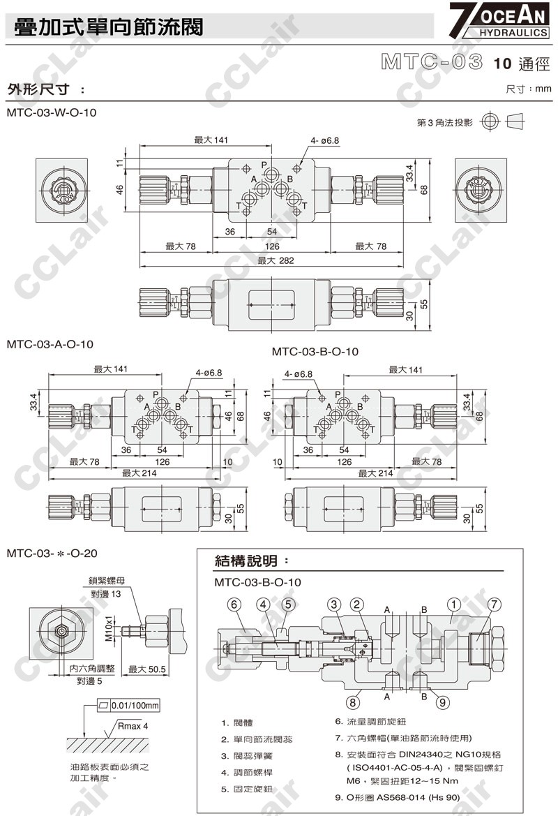 MTC-03-W,MTC-03-A,MTC-03-B,MTC-03-A-I-10,MTC-03-W-O-20,MTC-03-B-I-20,7OCEAN七洋疊加式單向節(jié)流閥