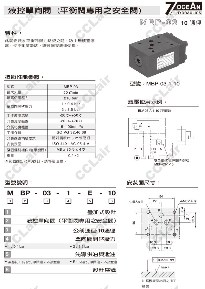 MBP-03-1-E-10,MBP-03-2-E-10,MBP-03-1-10,MBP-03-2-10,7OCEAN七洋疊加式液控單向閥