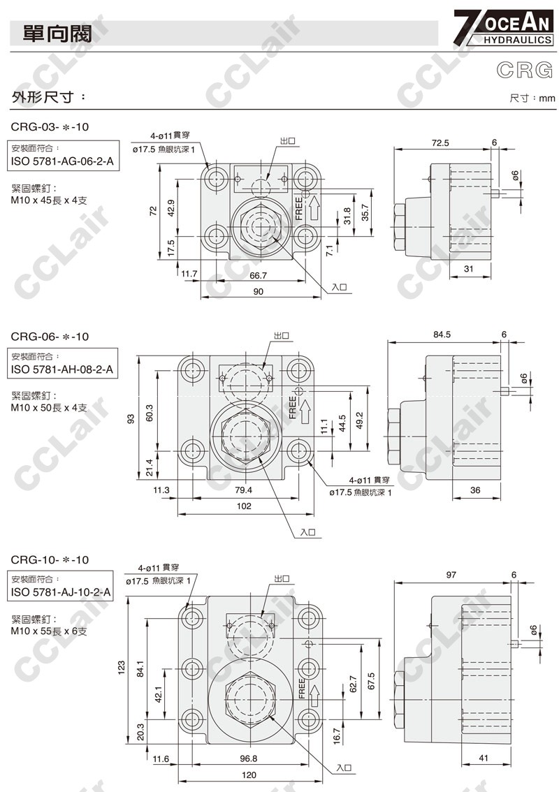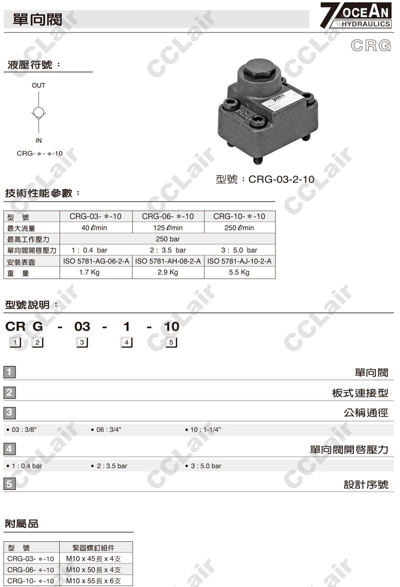 CRG-03,CRG-06,CRG-10,CRG-06-3-10,CRG-03-2-10,CRG-10-1-10,7OCEAN七洋單向閥