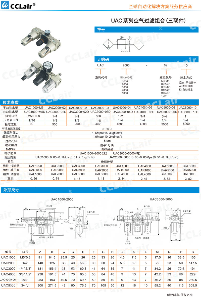 瀏覽次數(shù):1082UAC1000,UAC1000,UAC3000,UAC4000,UAC5000,UAC5000-10D,UAC1000-M5,三聯(lián)件 |