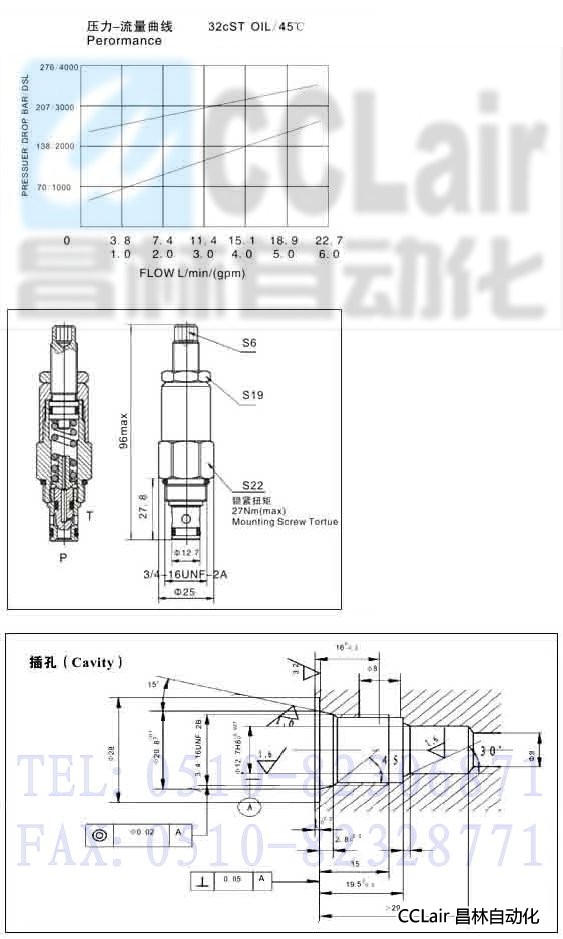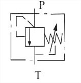 當(dāng)在P口的壓力超過調(diào)壓彈簧設(shè)定的壓力時(shí),錐閥 芯打開,P到T通,防止系統(tǒng)過壓。