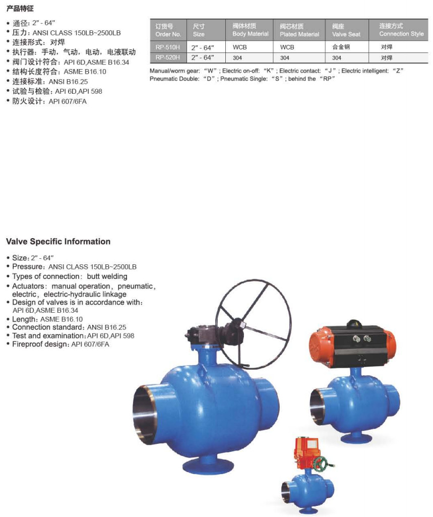 詳細(xì)信息 RP-510H-DN50,RP-510H-DN65,RP-520H-DN50,RP-520H-DN65,RP-510H-DN80,RP-510H-DN100,RP-510H-DN150,RP-520H-DN80,RP-520H-DN100,RP-520H-DN150,全焊接管線球閥