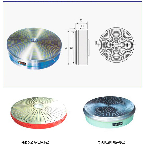 圓形電磁盤是各種圓臺式平面磨床的主要部件,用以吸持異磁材料進行磨削加工。面板經(jīng)過特殊處理,強度高,精度穩(wěn)定,無滲漏,可以長時間放在切削液中工作,可防止切削液腐蝕,延長了磁盤的使用壽命,吸力均勻,吸力≥120N/cm2。
