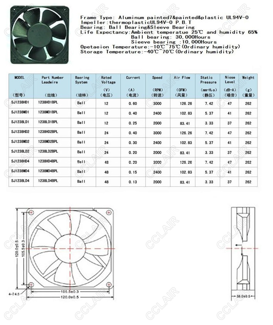 SJ1238HD1,SJ1238MD1,SJ1238LD1,SJ1238HD2,SJ1238MD2,SJ1238LD2,SJ1238,SANJI DC軸流風機