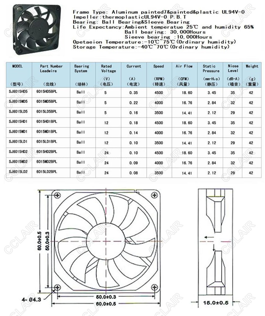 SJ6015HD5,SJ6015MD5,SJ6015LD5,SJ6015HD1,SJ6015MD1,SJ6015LD1,SJ6015,SANJI DC軸流風機
