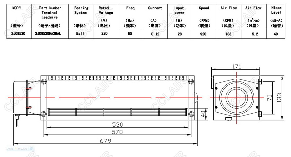 » SJ09530,SANJU 橫流風機