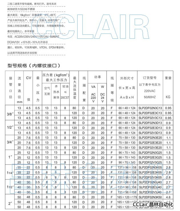 SLP2DF02N3H35,SLP2DF02E3H35,不銹鋼二位二通電磁閥(常開型)