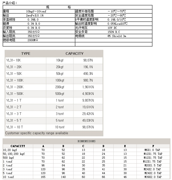 詳細(xì)信息 YL31-10K,YL31-20K,YL31-50K,YL31-3T,YL31-5T,YL31-10T,setech稱重傳感器