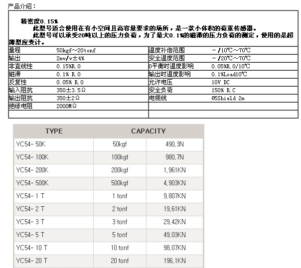 詳細(xì)信息 YC54-50K,YC54-100K,YC54-20K,YC54-1T,YC54-2T,YC54-3T,setech稱重傳感器