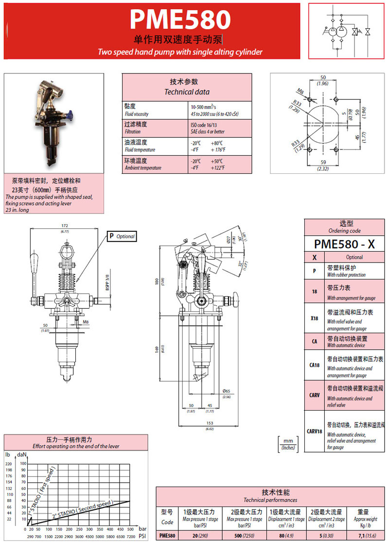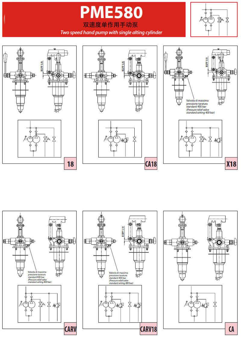詳細信息 PME580-P,PME580-18,PME580-X18,PME580-CA,PME580-CA18,單作用雙速度手動泵 PME580-CARV,PME580-CARV18,