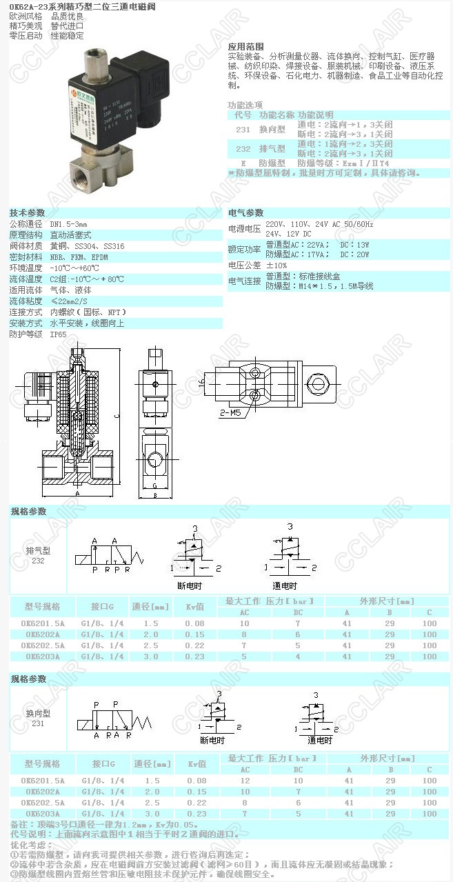 OK6201.5A,OK6202A,OK6202.5A,OK6203A,OK62A-23,二位三通電磁閥