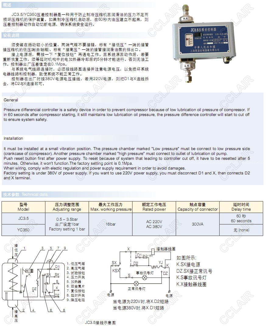 詳細(xì)信息 JC3.5,YC350,壓差控制器