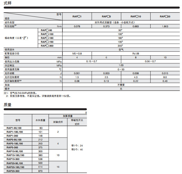 RAP1-90,RAP1-100,RAP1-180,RAP1-190,RAP1-360,RAP5-90,RAP5-100,旋轉(zhuǎn)式執(zhí)行元件