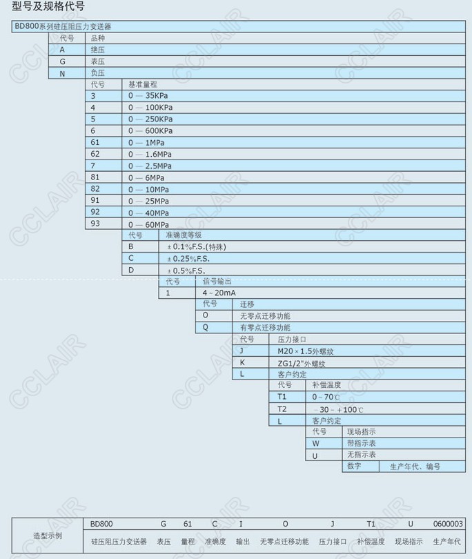 詳細(xì)信息 BD800A3,BD800A4,BD800A5,BD800A6,BD800G61,BD800G62,BD800G7,BD800N81,BD800N82,BD800N91,硅壓阻壓力變送器
