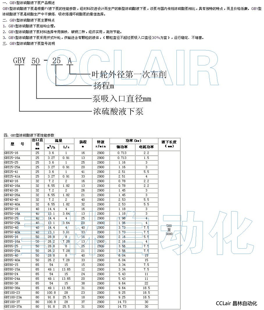 GBY25-16,GBY25-16A,GBY25-25,GBY25-25A,濃硫酸液下泵